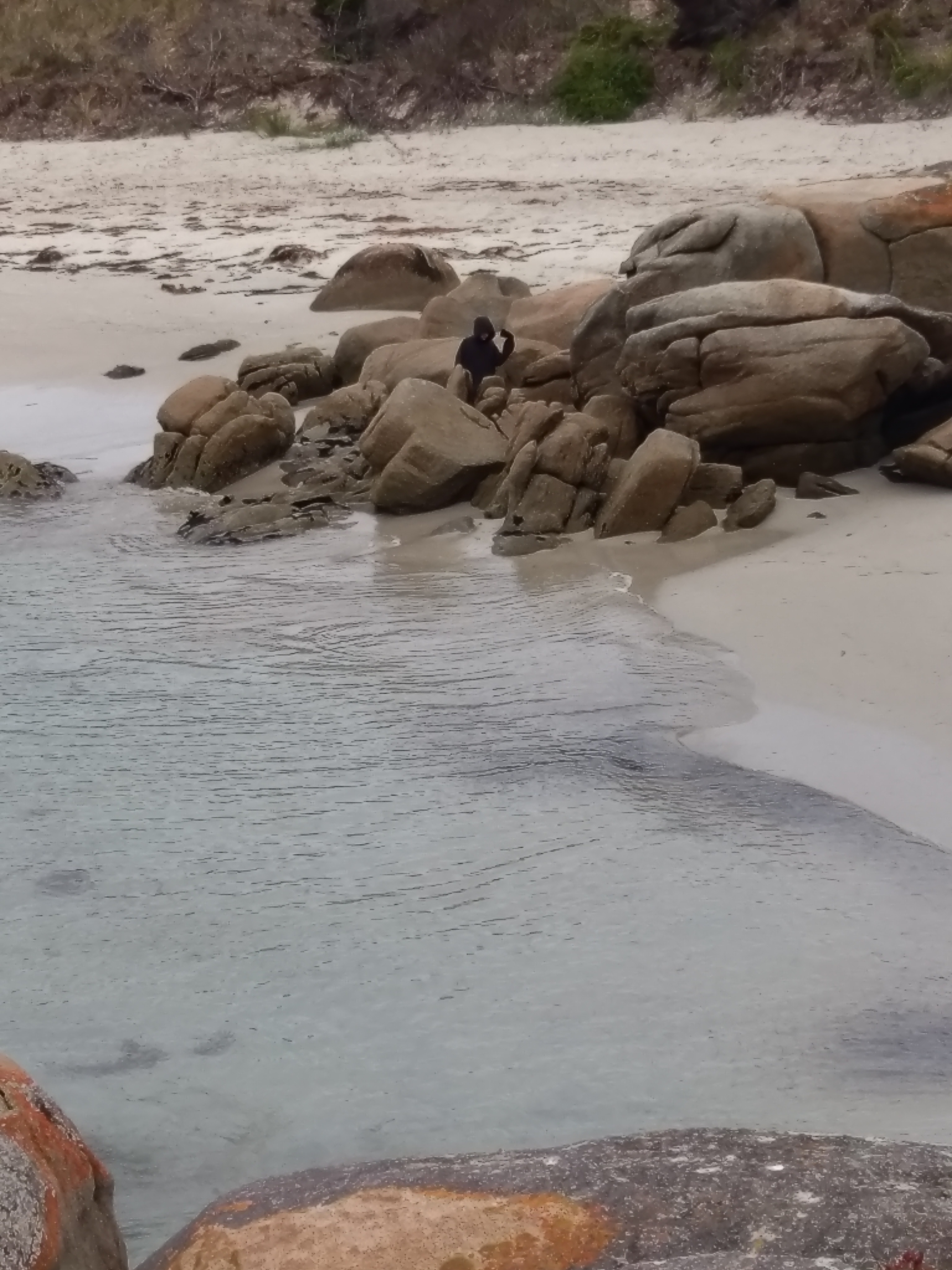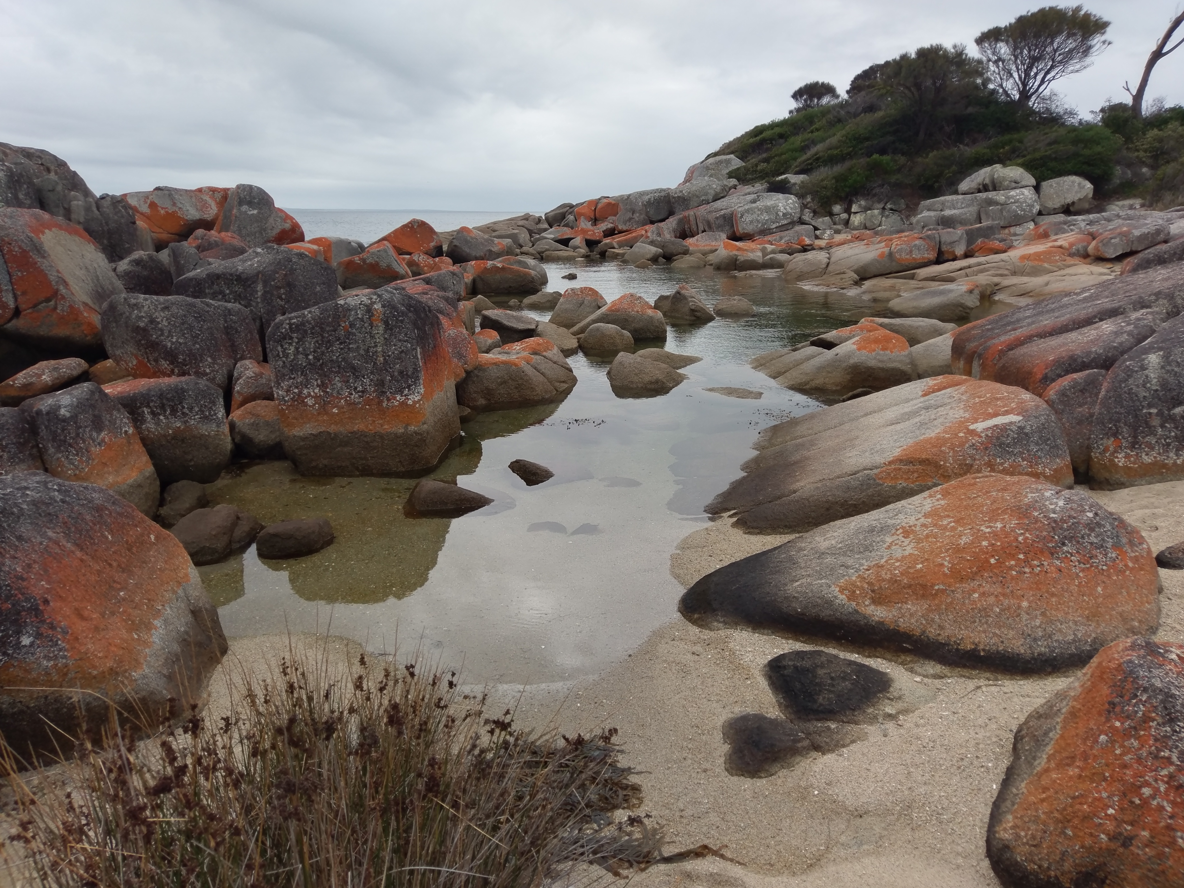 The Bay of Fires is on the north east coast of Tassie and has post card written all over it. Legend has it that it was named when a French sea captain with a French name was sailing down that way and he was unhappy with some of his sailors so he turned to each of them and said “You’re fired sacre bleu! You’re fired mon cherry.” Maybe I’m getting it mixed up with Donald Trump? I don’t know. But one thing is for sure and that is that is a spectacular spot with bright orange rocks.