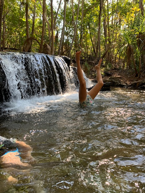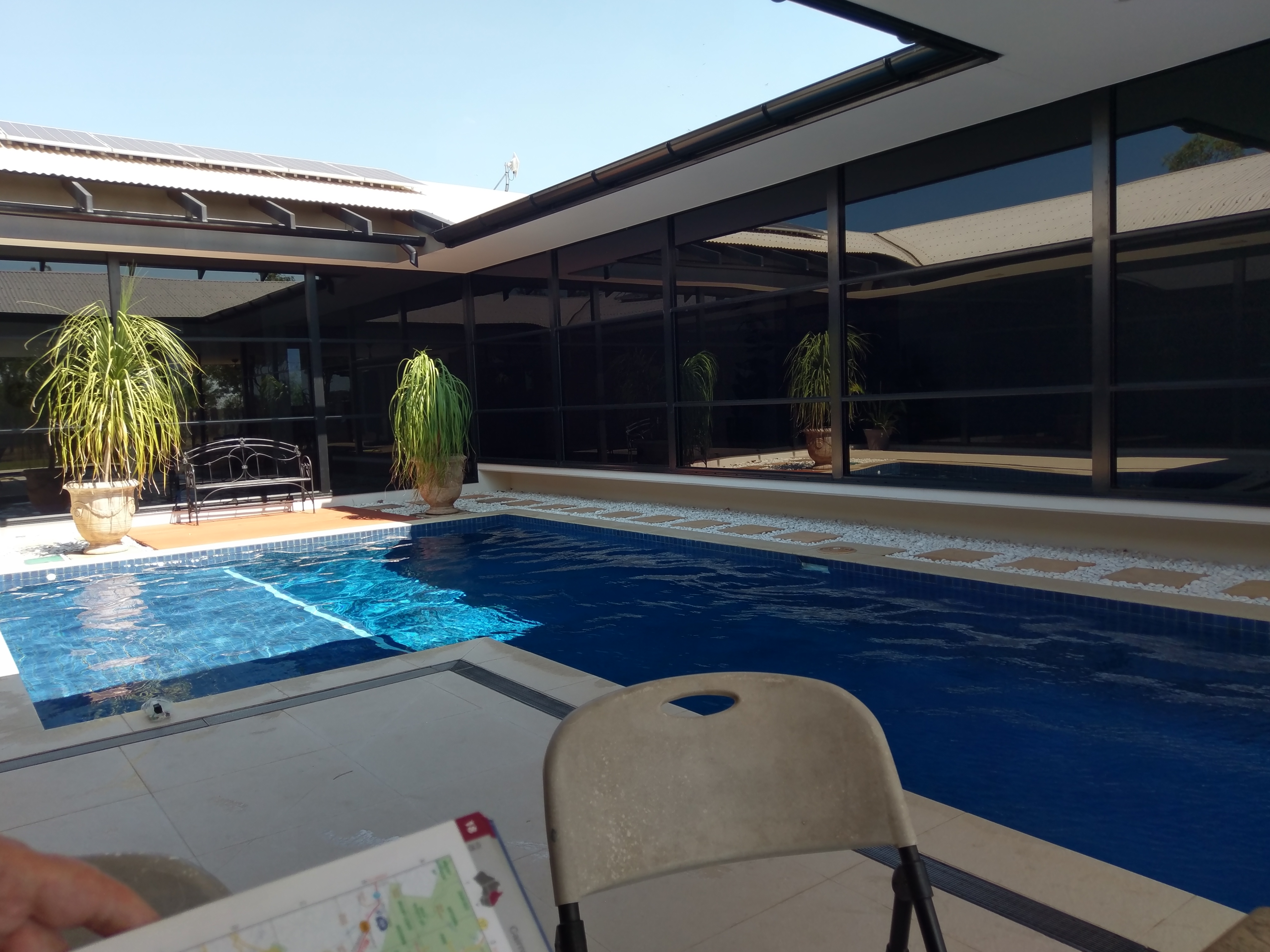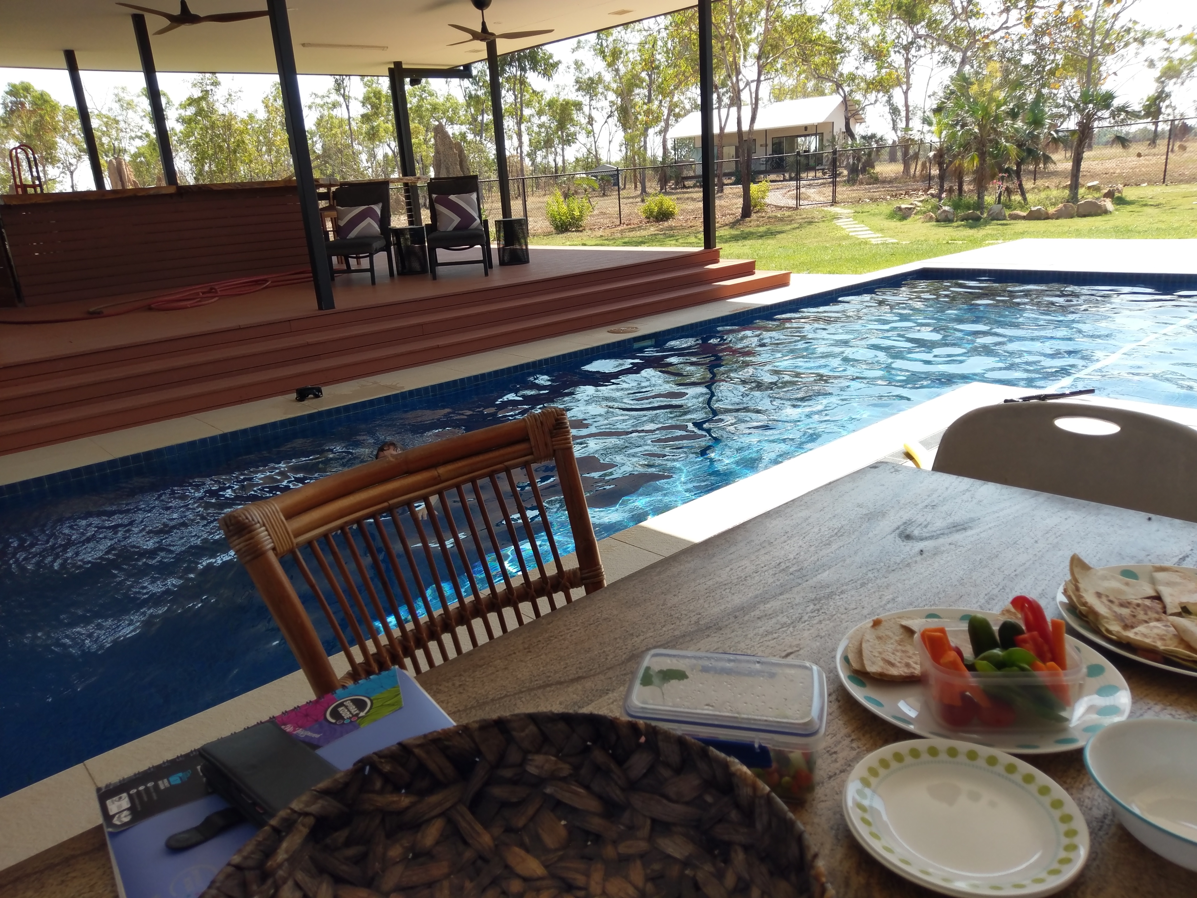 No it’s not food… It’s a place called Berry Springs just south of Darwin, or as it will be known by the kids – that amazing place where you could watch television and have WiFi in air-conditioned comfort. This story starts last year at Aunty Jo’s 90th birthday bash where I caught up with a number of long lost cousins. One of the longest and lostest was cousin Matthew. We talked to him and his partner Leigh at the party and they told us they lived near Darwin, but after ten years the heat was getting to them and they had their house up for sale. So as we left they said if they were there when we passed we should come and drop in. So we didn’t think they would still be there, but they were and a stop by for a cup of tea turned into a seven night sojourn. Oh my goodness how good was it to have such excellent company (they also had two other visitors who were most congenial) and feel so welcome into their spectacular house. I cannot thank them enough for being so generous with their time, advice and space, which was totally invaded.